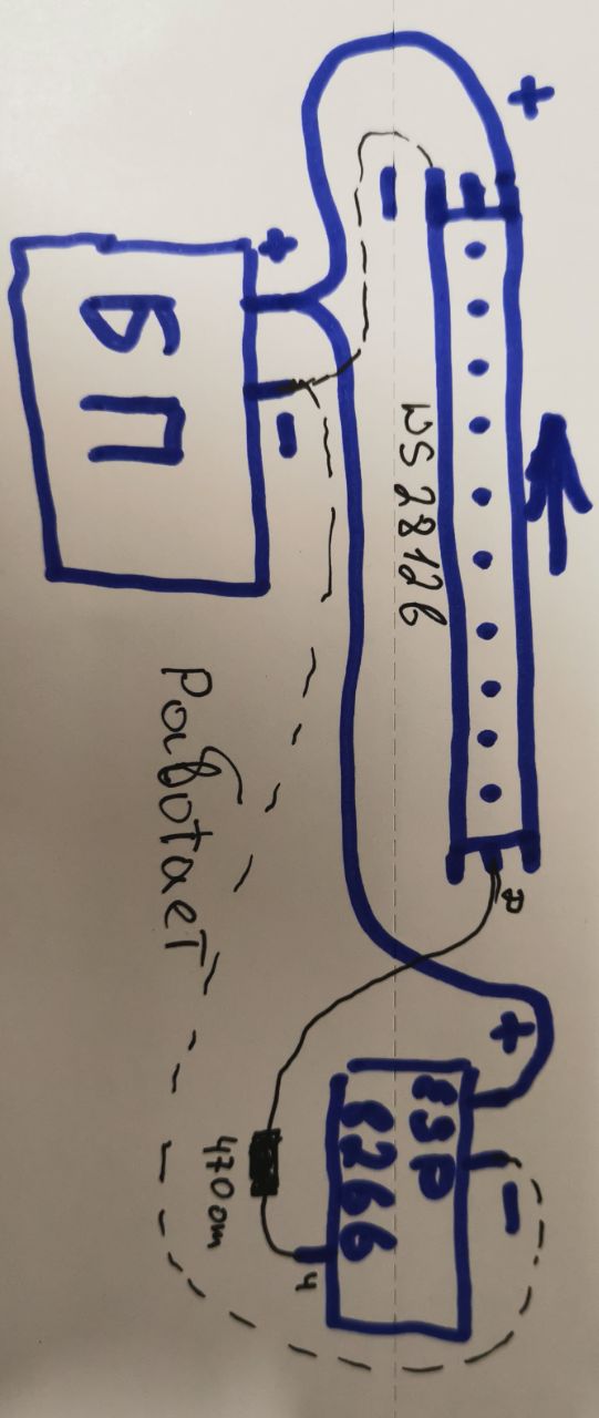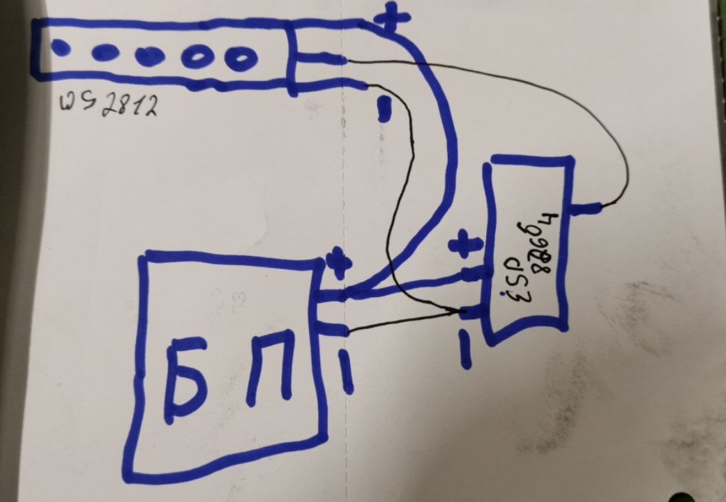 Привет может кто нибудь знает что такое. Подсоединил все по плану модуль esp8266 лента ws2812b прошивка WLED блок питания на 5в 60амер