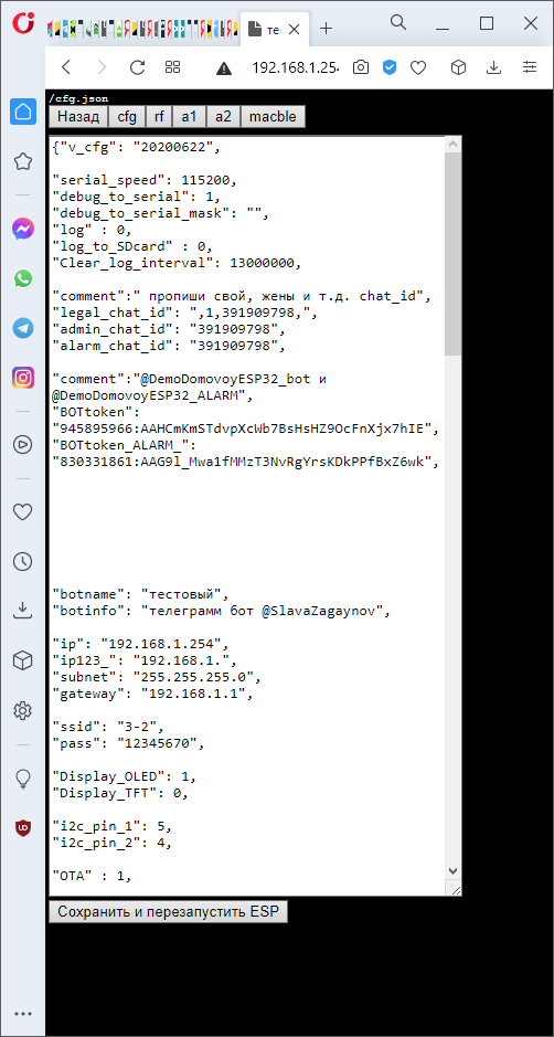 Всем привет ребята, разрабатываю девайс на базе ESP32 с уведомлениями по Телеграм. Так как этот девайс будет мной использован тут там то мне соответственно придется подключаться к разным вайфай сетям и прописывать разные Telegram ID (ChatId) в прошивку то я хотел бы сделать кнопку и на нее повесить запуск Точки Доступа а в ней веб морду с возможностью обнаружения и подключения к сети. (Это почти сделал). А вот вставить в код еще один веб сервер после подключения к искомой сети с возможностью добавить (удалить) из массива Телеграм ID уже в голову не лезет. ПАмааагииитее ))))