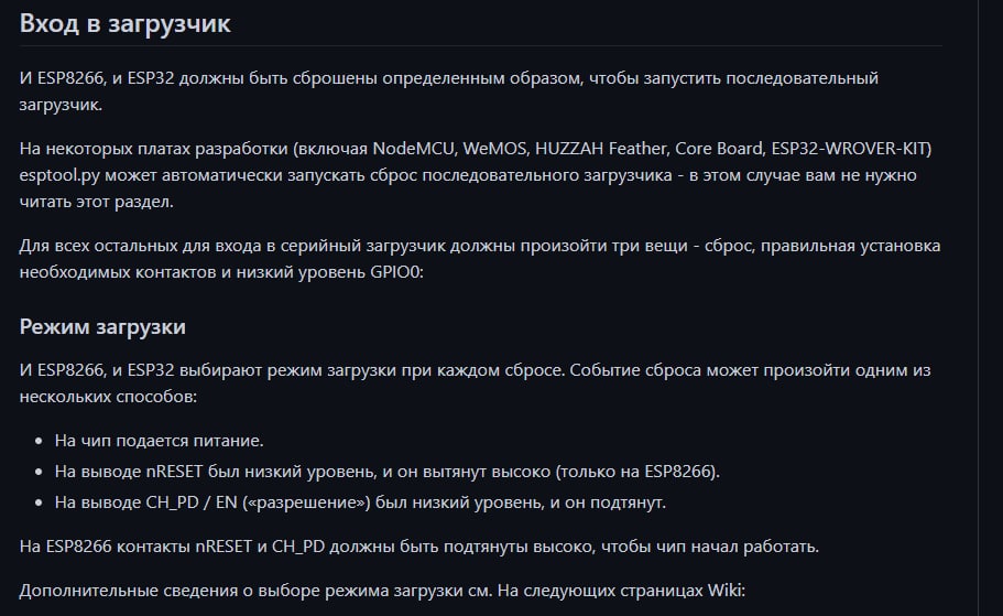 на самом же деле все просто - зажать boot. не опуская boot кратковременно нажать EN. отпустить boot. в момент когда EN стартует чип происходит чтение ног загрузки ( страппинг ноги) если boot зажат в этот момент включается загрузчик room и ждет команд прошивки. все.