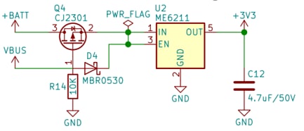 Удивило. 1. Нет точки соединения VBUS-R14. 2. + подключен на DRAIN в p-мосфет.