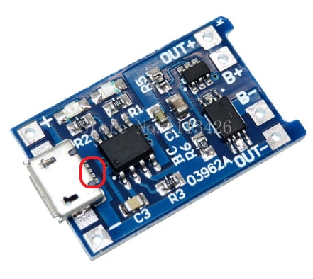 Я имею в виду микро-USB разъем платы TP4056.