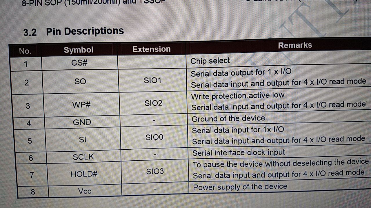 - DIO - хост SPI использует команду «Dual I / O Fast Read» (BBh). Два контакта SPI используются для записи части команды адреса флэш-памяти и для чтения флэш-данных. Следовательно, для этих фаз требуется половина тактовых циклов по сравнению со стандартным SPI.