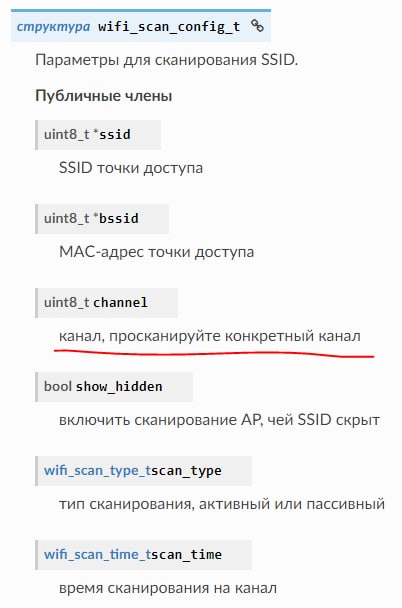 А как в ESP указать фиксированный канал WIFi, что бы при подключении не перебирала все, а сразу поключилась на указанный