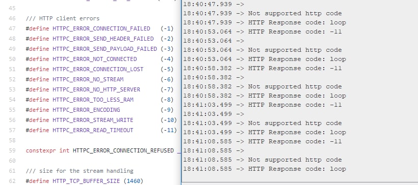 Отправляю запрос по http на сервер, который отвечает от 0-20 секунд. Через секунду после отправки запроса получаю http response code -11. В сорцах <ESP8266HTTPClient.h> нашел что этот код означает HTTPC_ERROR_READ_TIMEOUT. Как можно избежать этого кода?