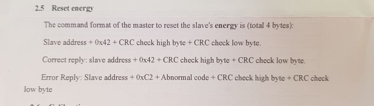 Подскажите пожалуйста, как сделать сброс показаний reset energy в модуле PZEM-004T v3.0? Работает в связке с ESP32, прошита esphome. Все работает исправно, в home assistant видится, только сброса показаний нет. Думал сделать выключатель для сброса, как будет выглядеть команда? В инструкции к устройству указано slave address + 0x42 + CRC check high byte + CRC check low byte.