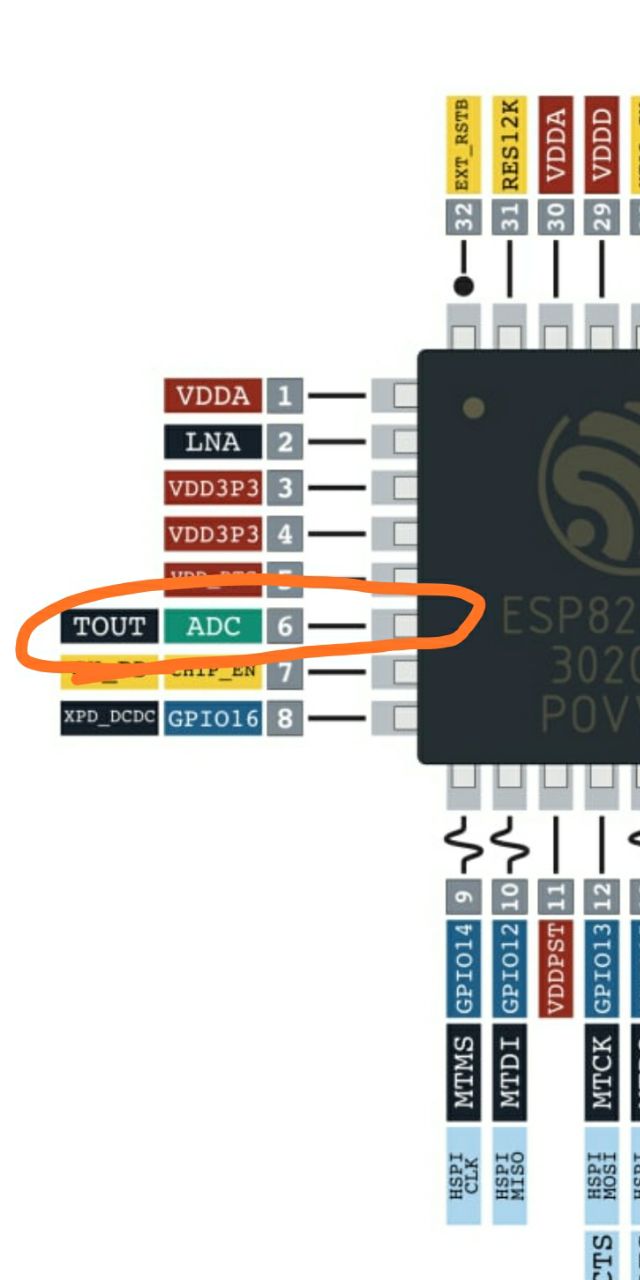 Контакт ADC конвертирует напряжение, находящееся только в диапазоне от 0 до 3,3 вольт. Поэтому перед тем, как подавать на контакт ADC (он же A0) какое-либо напряжение, убедитесь, что используете устройство, которое выдает не более 3,3 вольт. В противном случае вам понадобится делитель напряжения: