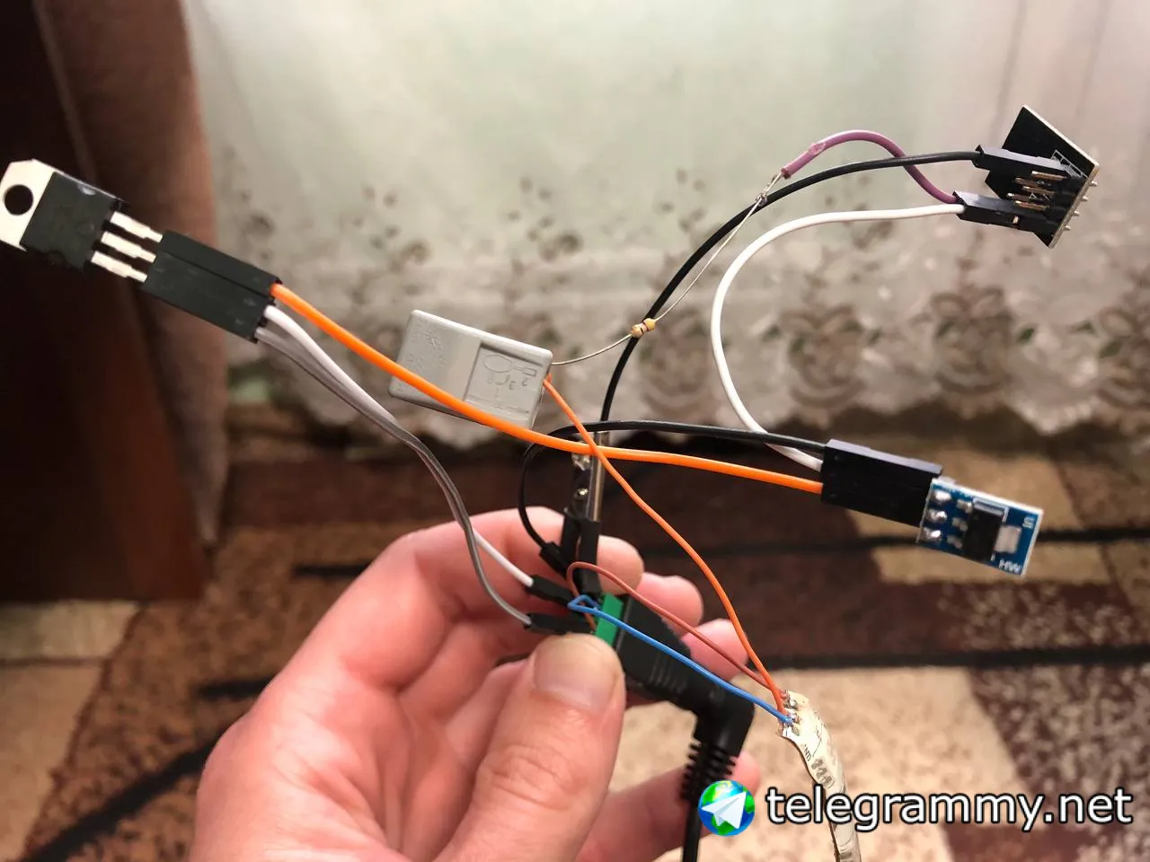Добрый день! Подключил адресную 12 вольтовую ленту через esp-01 питание: голый стабилизатор L7805CV 12-5 вольт далее готовый модуль стабилизатора с обвязкой на 3.3v ну и собственно esp.