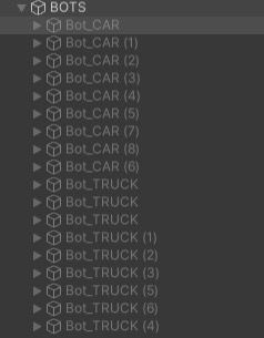 по 9 машинок каждого вида. Есть хетчбеки и монстртраки на ваш выбор. Выключены и аккуратно сложены в специальный геймобжект. Можете брать, включать и убирать обратно. Постарайтесь не поцарапать, новых не будет