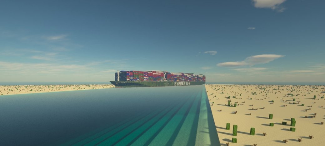 Энтузиаст потратил 11 часов на воссоздание в Minecraft корабля, застрявшего в Суэцком канале