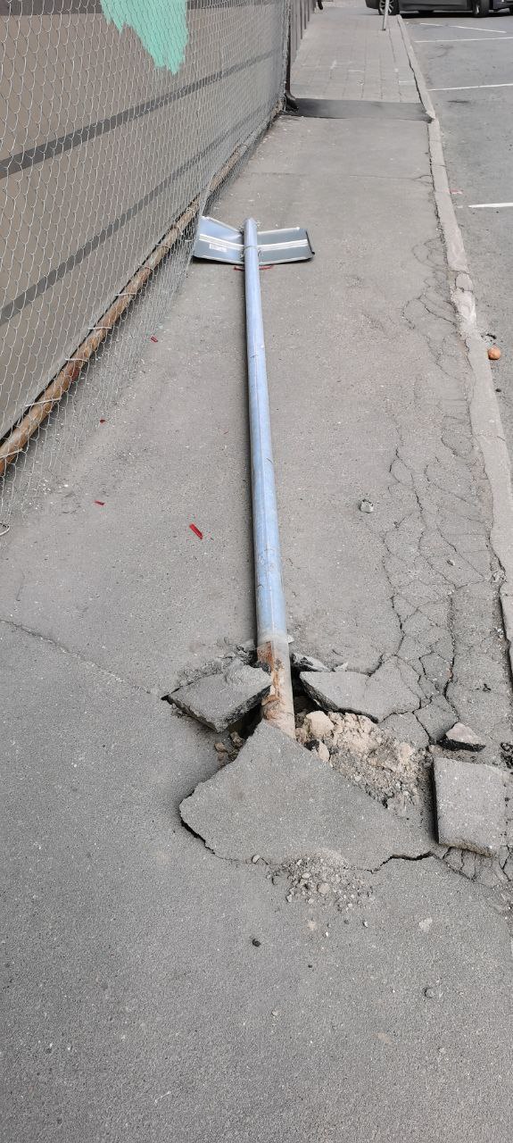 вон, аж столб упал