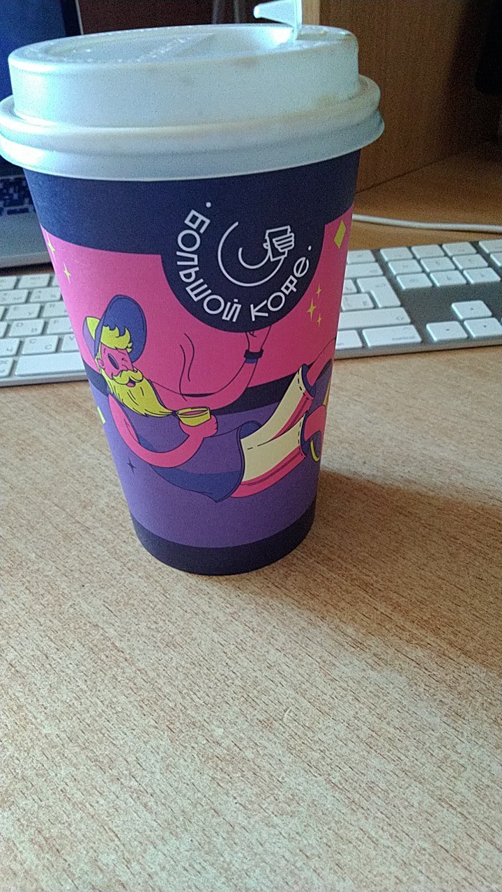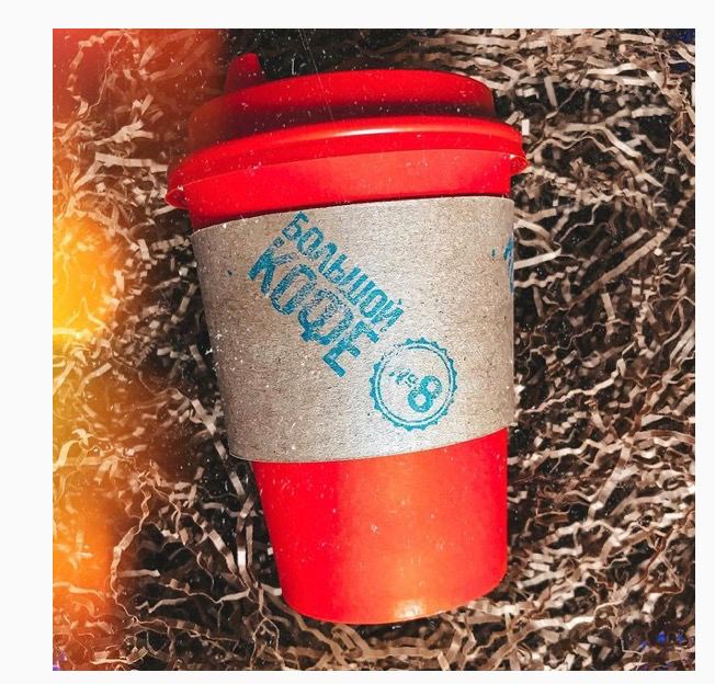 Обычный стакан из дефолтного красного картона, термостойкая картонка, чтобы не обжечься со штампом, вырезанная и отпечатанная на коленке