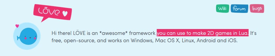 Код на Lua, встроенный экспорт в бинарники, целый инструментарий для графики, тайлмапов и звуков.