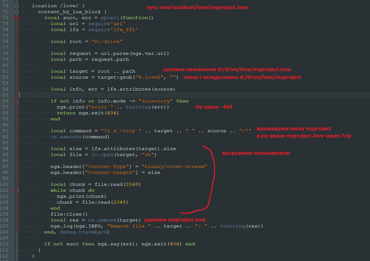 Вот эту штуку делал для быстрого тестирования ловки на мобилках. Вот такой кусочек кода позволяет ловке скачать с веб-странички .love-файл и тут же запустить так, как будто его и запустили с самого начала.