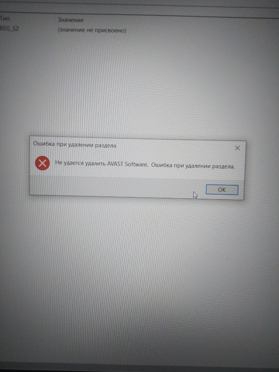Из реестра не удаляется(