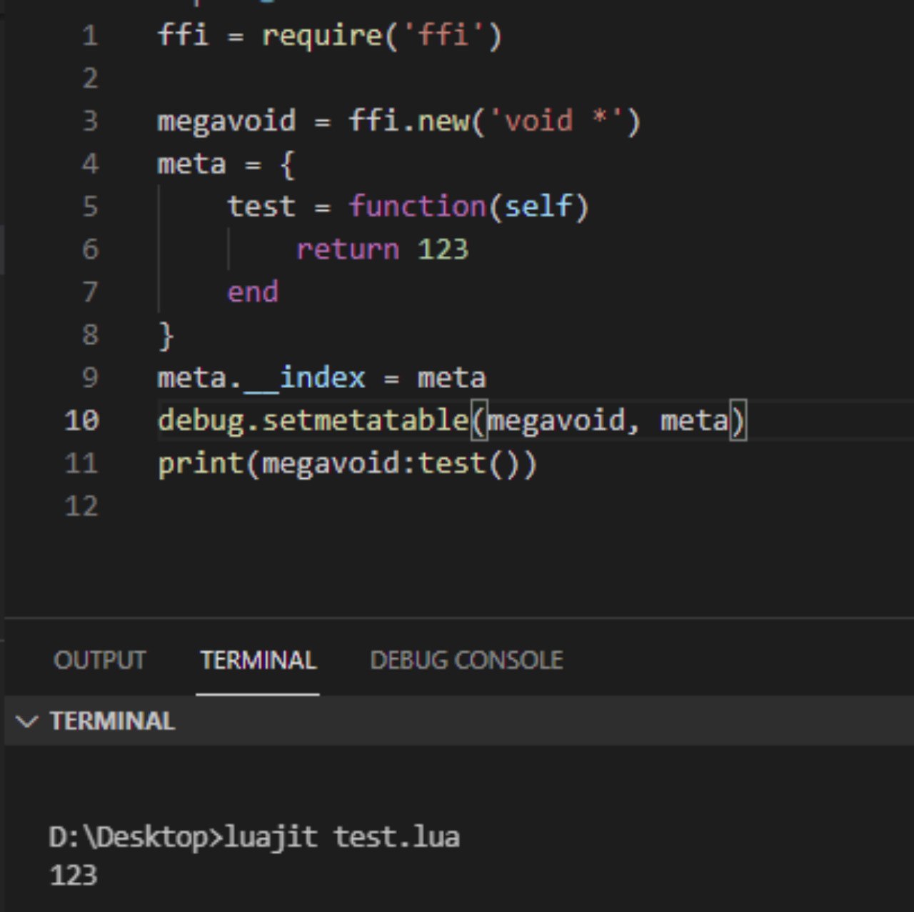 А сам FFI только метатип позволяет создать с метатаблицей