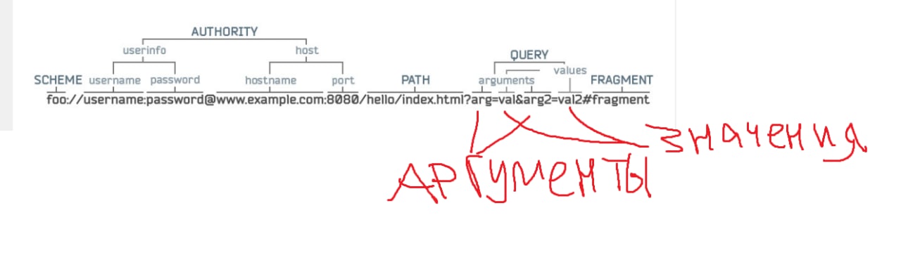 Запрос начинается с первого знака вопроса(?) и заканчивается октоторпом(#) или концом URI