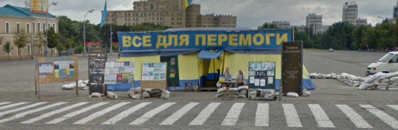 а камера по ходу отсюда. (а, не, жопа палатки в кадре на видео. Кстати мб в нее и целились, выглядит вполне по-бандеровски)