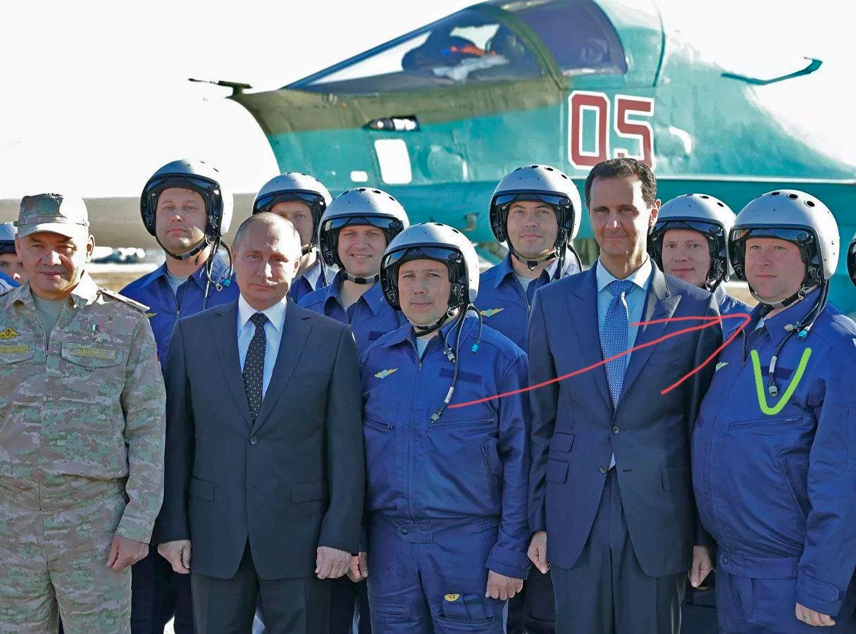 Пленный летчик Красноярцев на одном фото с Путиным, Шойгу и Асадом.