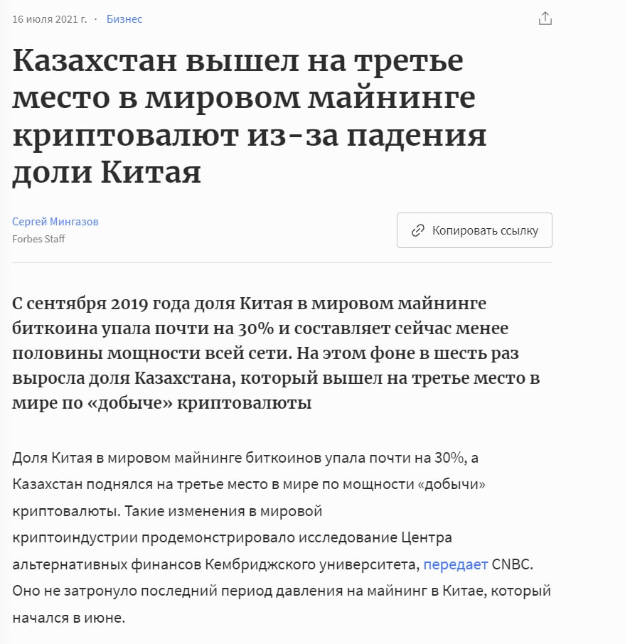 Если у нас не будут запрещать, то мы тоже выйдем в топ, хотя у нас и так вроде дофига майнят