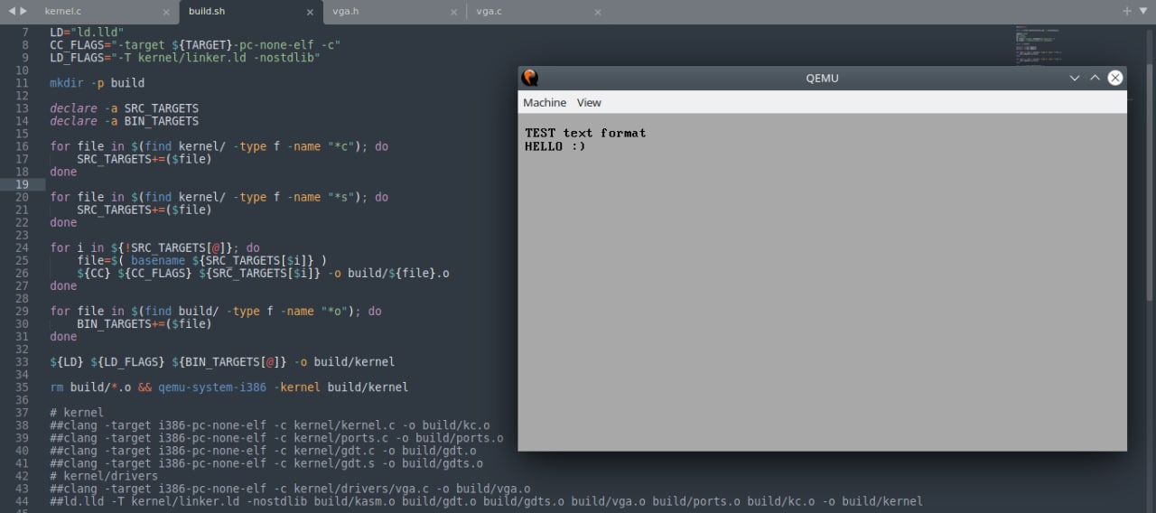 В общем продолжаю изучать тему о написании ос, практически нечего не сделано, кроме небольшого форматирования строк, вроде бы правильно настроил gdt таблицу, но нужно будет это еще проверить.