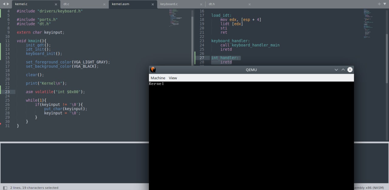 А ок, вроде прерывания работают, пока что пустой обработчик для всех прерываний, но для клавиатуры уже все работает (есть обработчик).