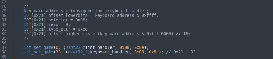 0 это для теста заполнил пустым обработчиком, если без него в kernel.c, написать к примеру:
