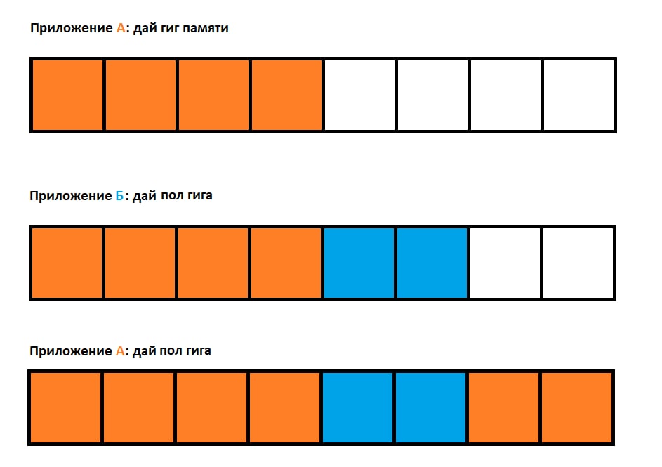 Приложение А такое: дай гиг памяти. ОС такая: "держи четыре гига, расходуй как хошь".