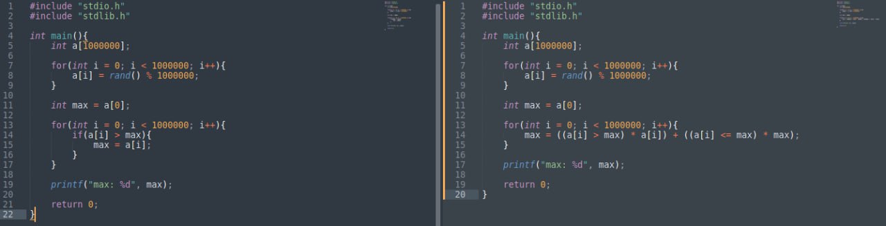 В общем я написал на Python и C нахождение максимального числа из массива и с if быстрее чем без него