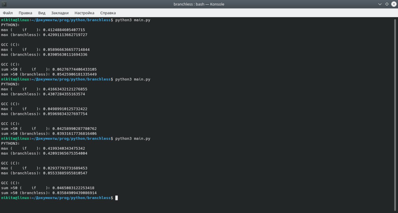 Если искать сумму если элемент >50, тогда branchless быстрее ветвления.