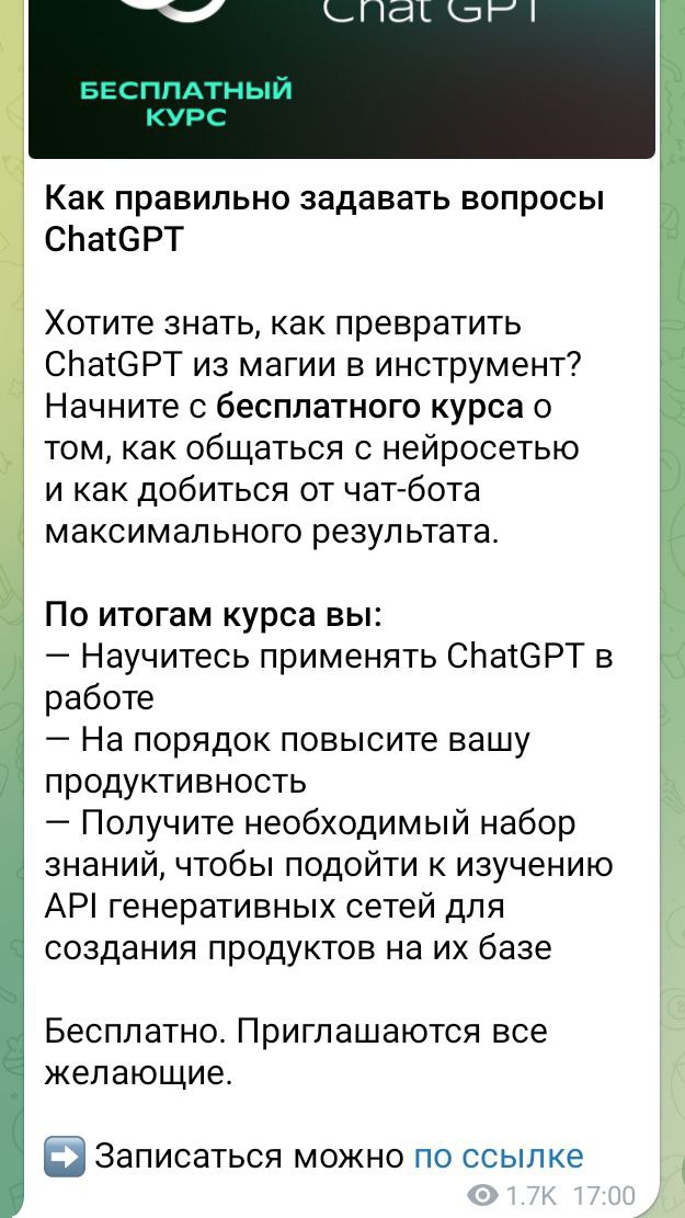Теперь не только по программированию, но и по ChatGPT есть 'полезные' курсы
