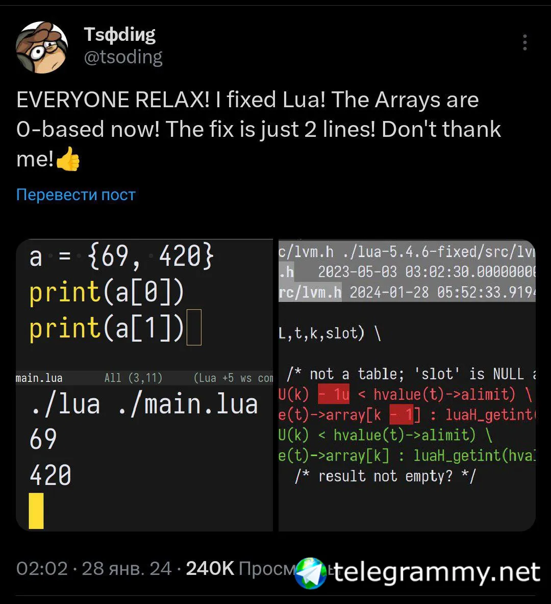 Судя по ветке твитов, ipairs он таки починил. Я хз что там в деталях, но объясните мне, пожалуйста, нахрен вообще было нужно это начало с единицы?