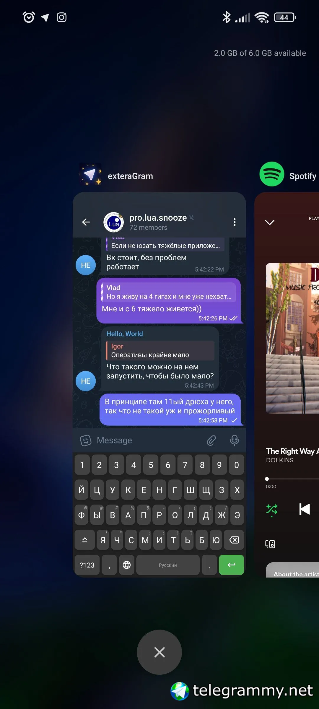 Если закрыть само приложение, то освобождается мегабайт 200-300