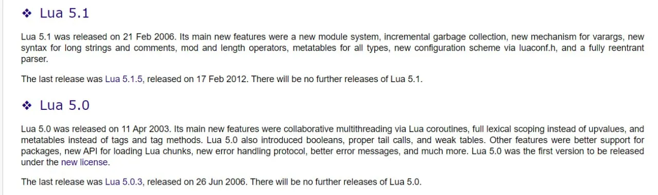 Почему многие предпочитают последнее хотя там поддержка Lua 5.1 только, а луа уже вроде 5.4.