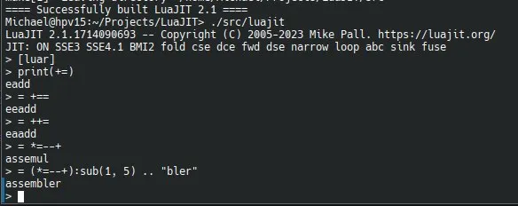 И реализованы кастомные операторы, правда, только на уровне лексера. Лексер просто должен выдавать TK_operator с закодированной читаемой строкой