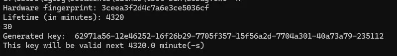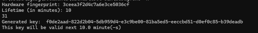 Ключи генерирует временные в зависимости от конфигурации компьютера и указанного времени действия ключа