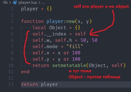Но внутри функции player:new хранится только ссылка на новую таблицу (экземпляр класса), которой указана как управляющая player, которая потом выплюнется в переменную-объект которой мы присвоим вывод функции, я прав?
