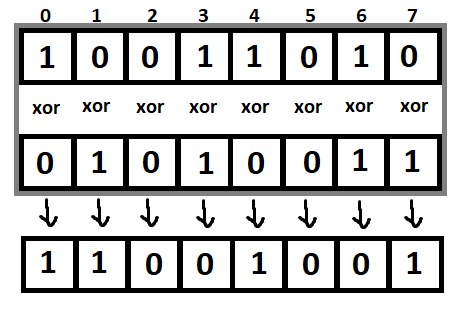 Множество первых битов, множество вторых битов, множество третьих и так далее. И a xor b — проведение операции над каждым множеством по порядку битов.
