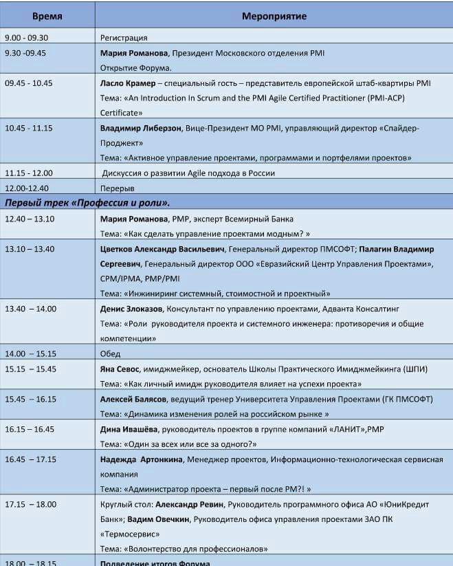 Спикеры разные из международного PMI, из российского и вообще из профсообщества