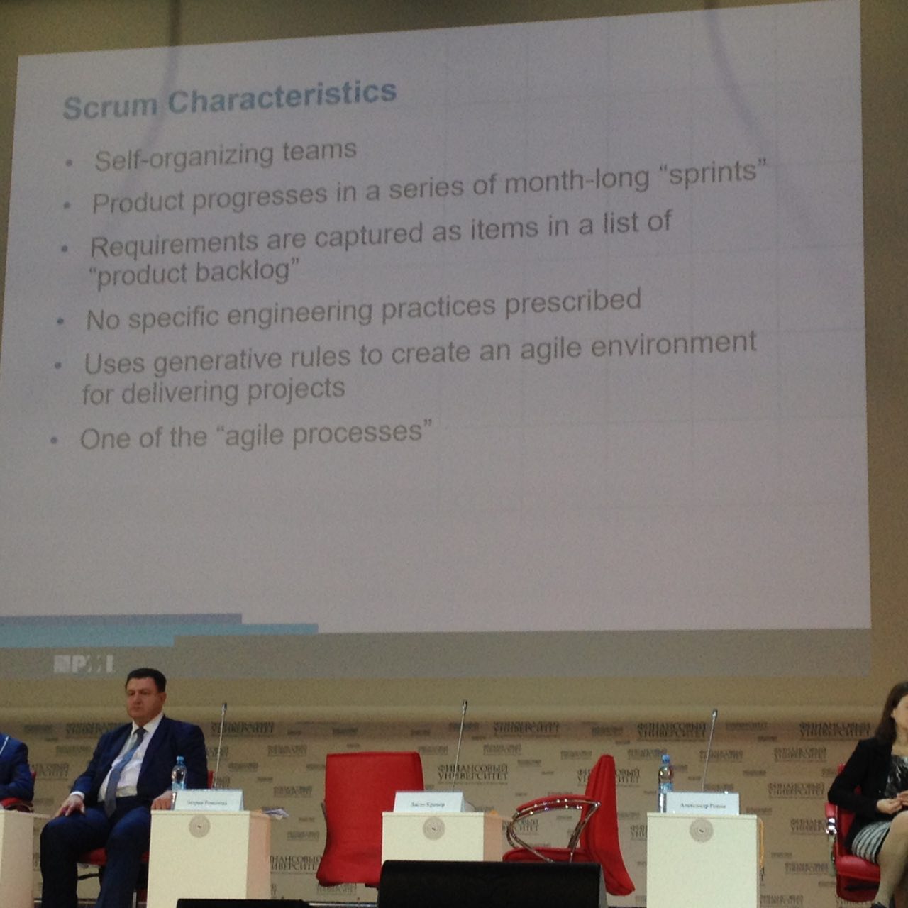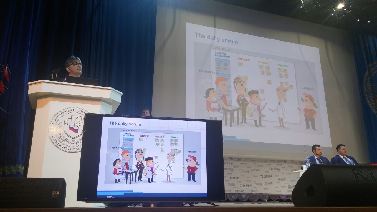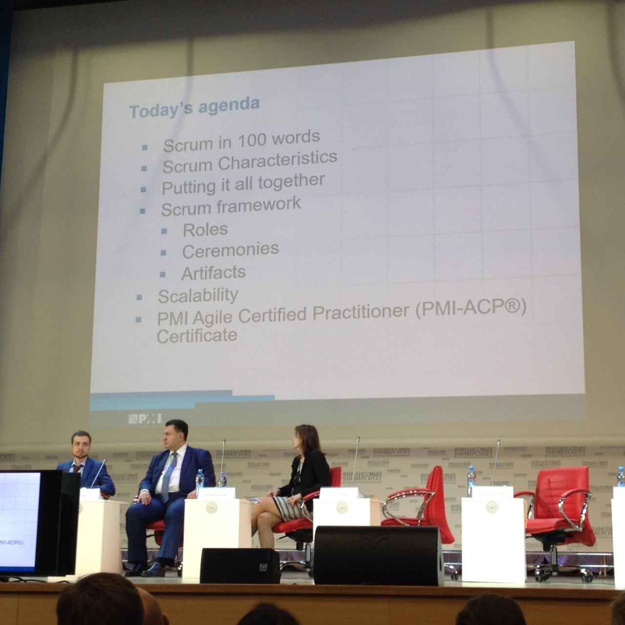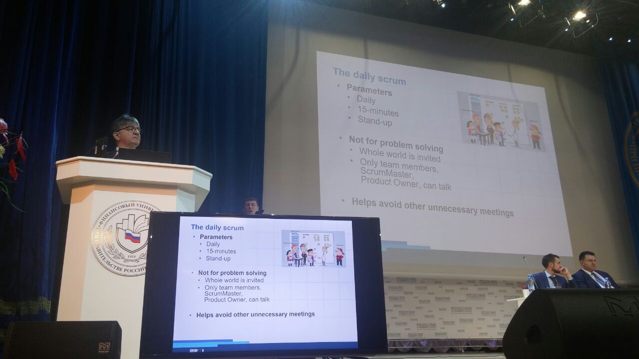 Начал работу Открытый Форум Московского отделения PMI. Выступает Ласло Крамер - представитель европейской штаб-квартиры PMI. Рассказывает поо Scrum и Agile. Про Agile сертификацию