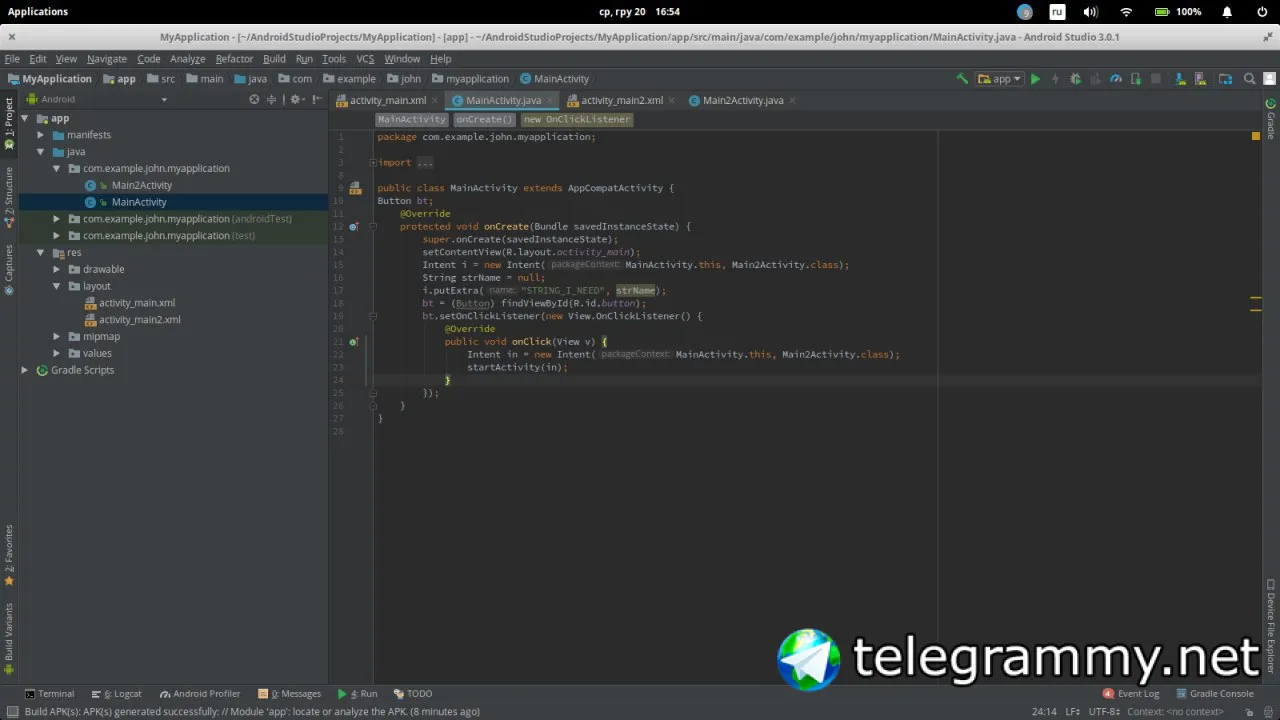 При переходе на второй активити