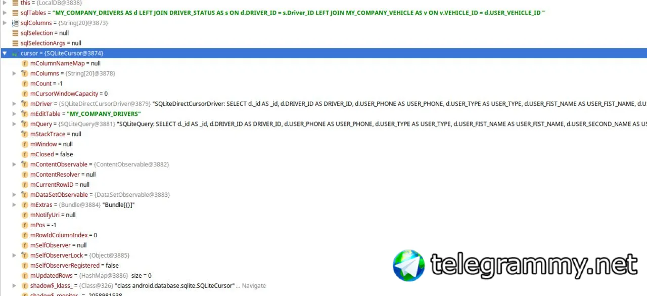 для этого я перехватываю результативный курсор и хочу глянуть, значения в этом курсоре