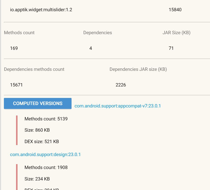 compile ('io.apptik.widget:multislider:1.2'){ exclude group: 'com.android.support:appcompat' exclude group: 'com.android.support:design' exclude group: 'com.android.support:support' }