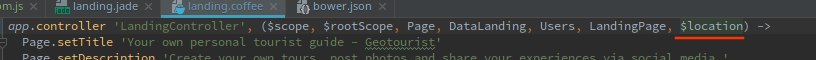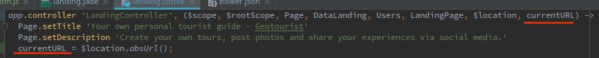 А там где у тебя currentUrl = напиши $scope.location = $location