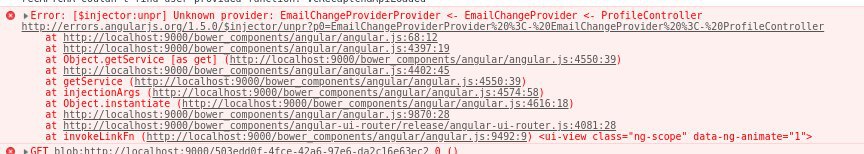 В ProfileController скорее всего EmailChange не правильно инжектится. Либо не так он называется, либо Provider не приписан