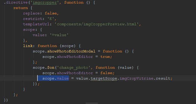 хочу изменить "value", но выходить ошибка Expression 'undefined' in attribute 'value' used with directive 'imgcropper' is non-assignable!