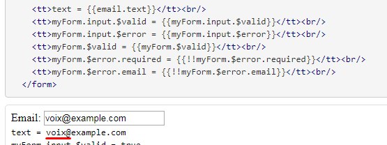 а, у меня же по сабмиту, а у него это ng-change, скорее всего из за этого, так как тип имейл сообщит об ошибке пока нет @, и получается что у него имейл просто не пропускается