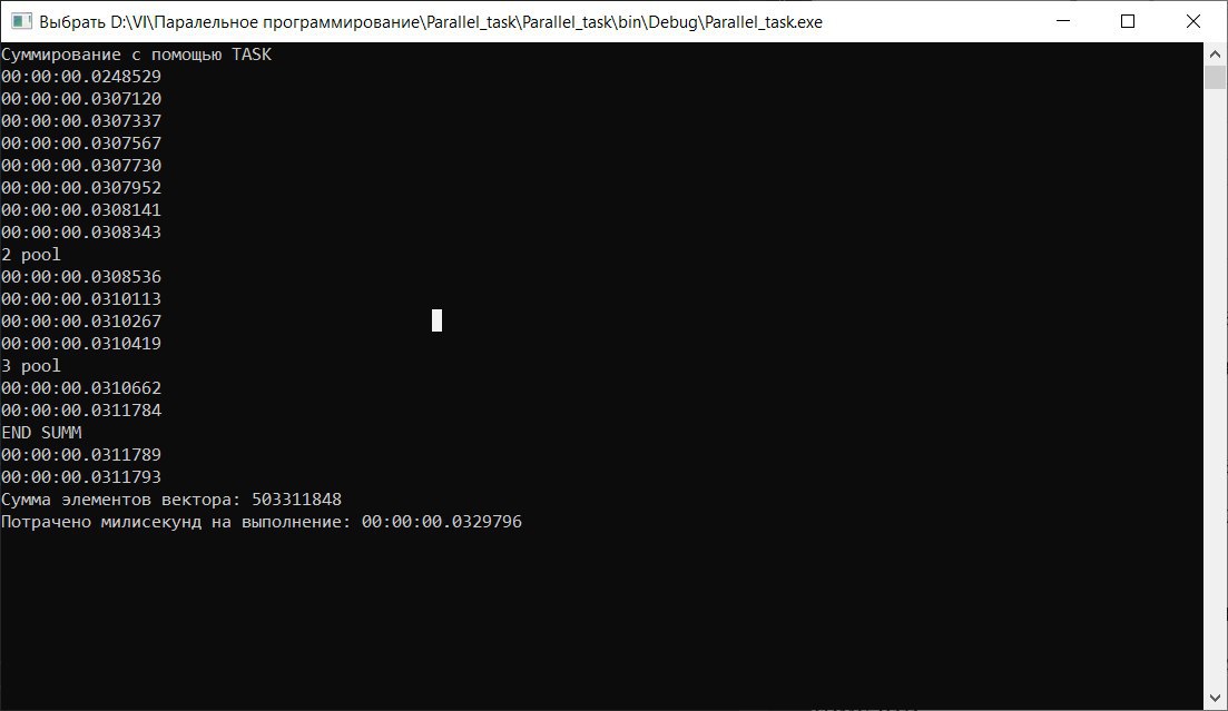 Я первый раз (по учебе) столкнулась с параллельным программирование и задачу суммирование элементов вектора решаю с помощью Task'ов. Почему то всегда при запуске программы первый таск выполняется гораздо дольше остальных. Я вроде понимаю что это правильно, но не могу понять почему именно так происходит. Можете просветить?