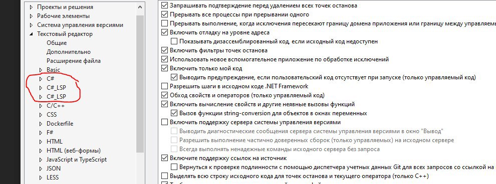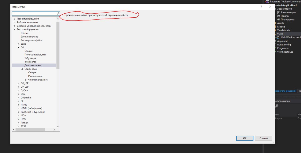 ну и то не самое главное - главное это, некоторые параметры не открываются (версия VS 2019 16.6)