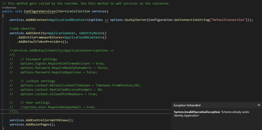 InvalidOperationException: 'Scheme already exists: Identity.Application'