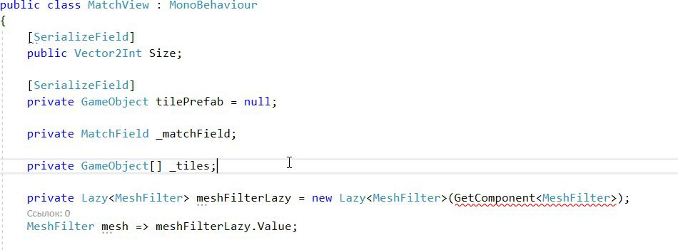 в котлине это было бы так val mesh by lazy {GetComponent<MeshFilter>()}